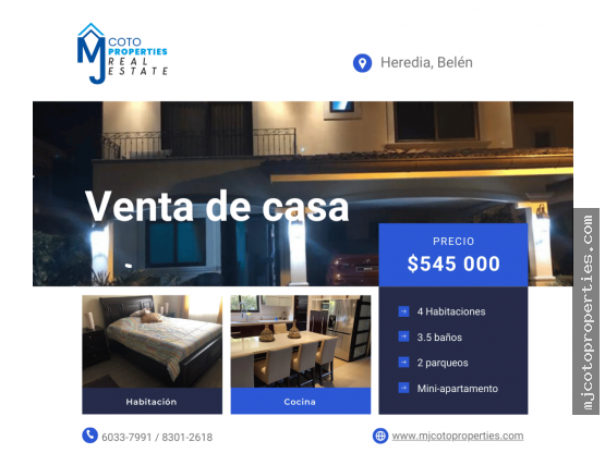 VENTA DE CASA DE 3 PISOS, HEREDIA, BELÉN